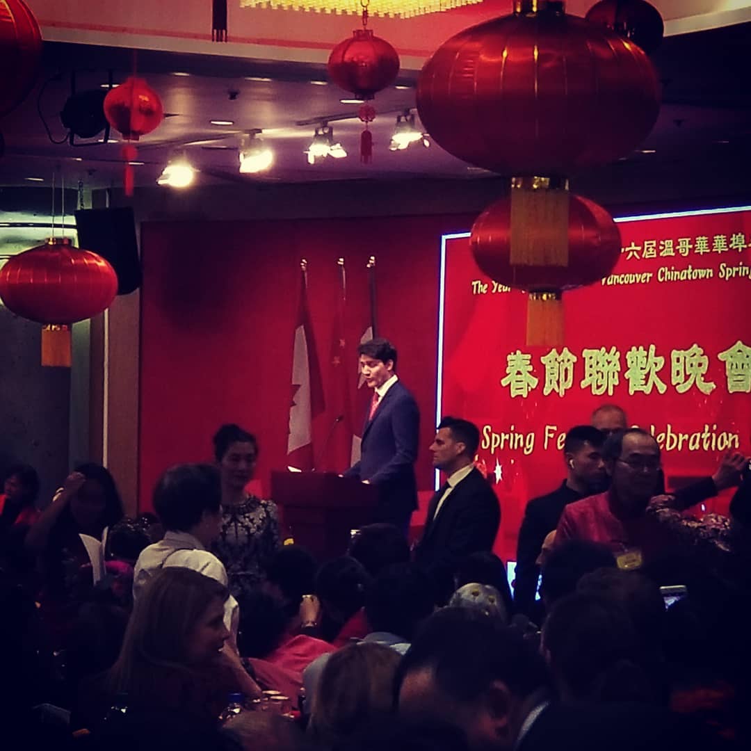 2019年时任总理特鲁多在华埠富大