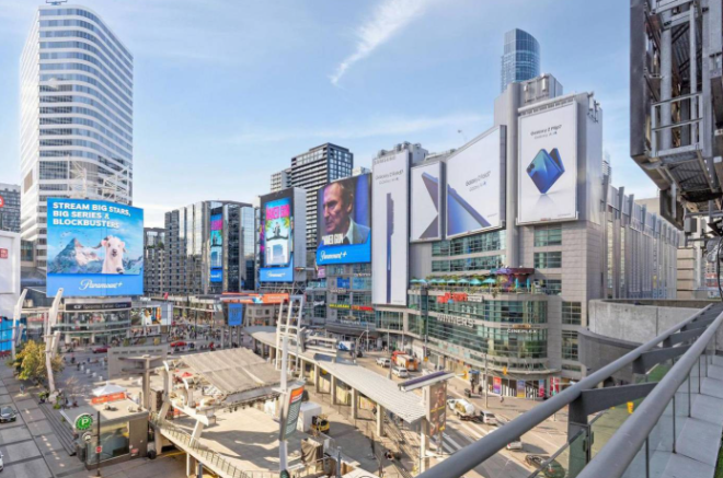 多伦多市中心的Sankofa广场(原名Yonge-Dundas广场)旁,一栋标志性广告楼现已挂牌出售,叫价3450万加元。