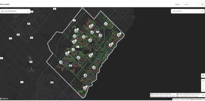 道路分为优先级 1(主干道)和优先级 2(住宅区)。优先级 1 道路在降雪结束后 12 小时内清理,优先级 2 在 16 小时内清理,目前具体执行情况仍在更新中。