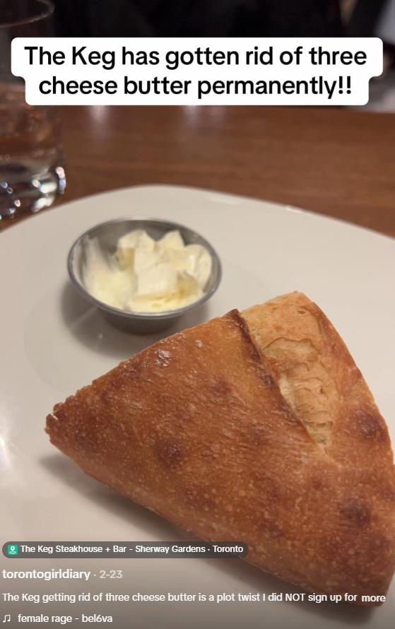 一位多伦多TikTok用户在Sherway Gardens分店用餐时,发现这款黄油已经停止供应。他把这个消息发布到网上,评论区瞬间炸了。