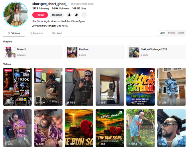 诉讼称,这位舞厅歌手在TikTok上的用户名为Short Ghad。