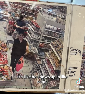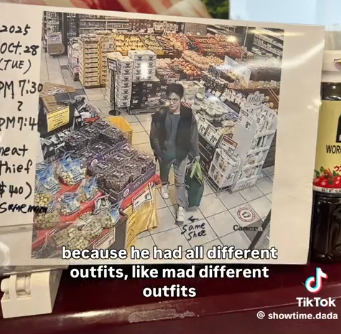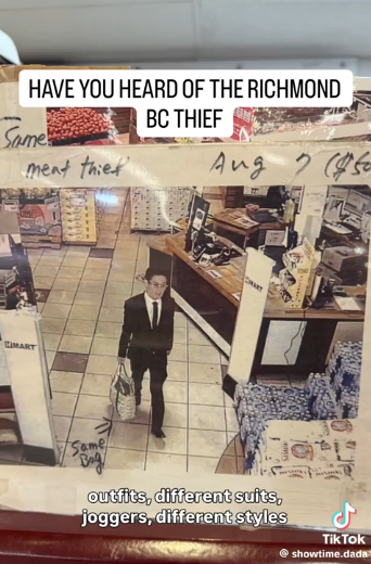 视频里出现的多张亚裔男子照片,被挂在了列治文一家H-Mart韩国超市的墙上。而这些照片上都写着具体时间,并标注“肉贼(meat thief)”和“同一男子(same man)”!
